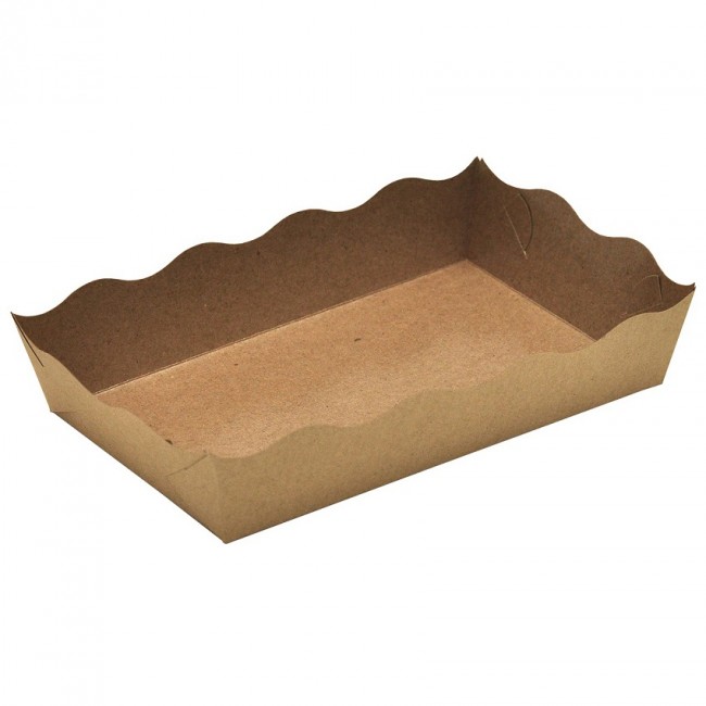 ถาดกระดาษน้ำตาลเคลือบเงา (Brown paper tray with lamination) ราคาต่อแพ็ค